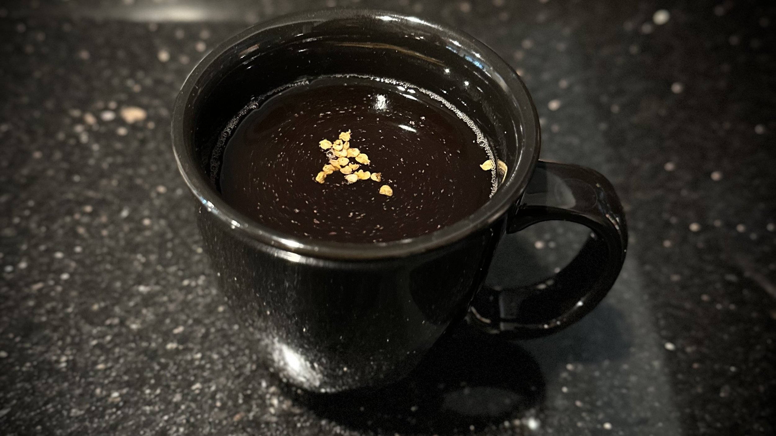I brewed some black tea and am letting it sit to cool. Room temperature is the goal, and it should be ready when it’s time to soak the seeds.
