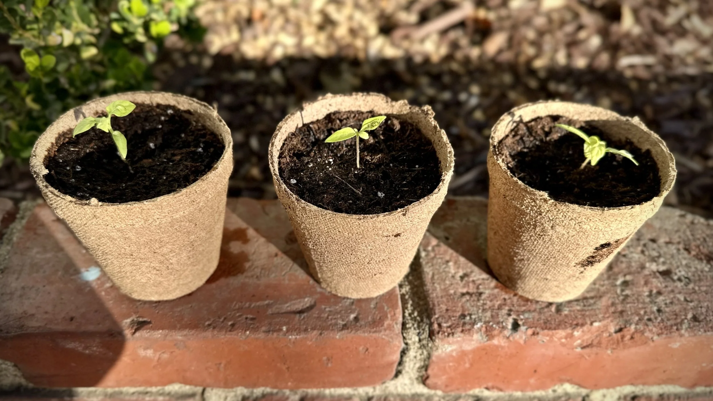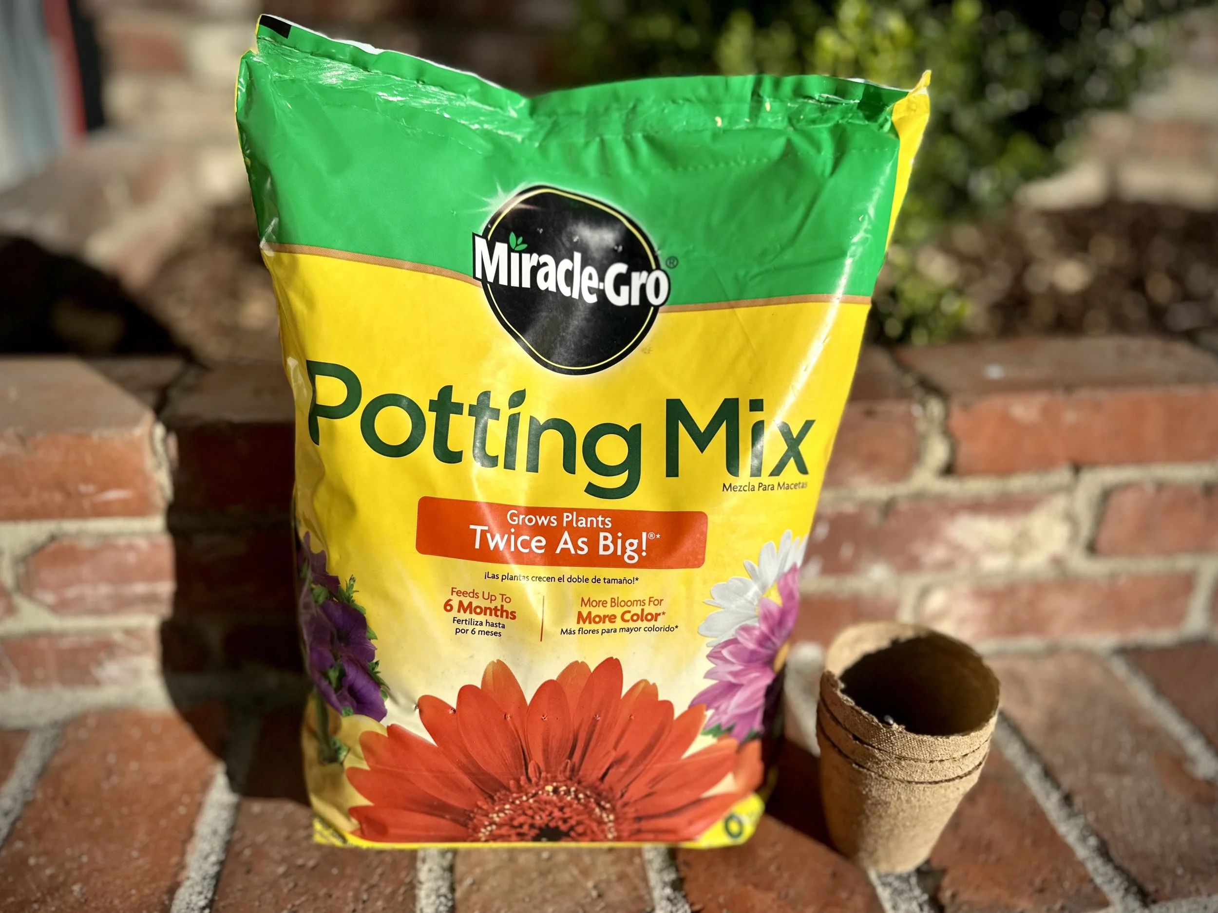 I picked the 3 seedlings that were the largest but I’m by no means giving up on the full batch yet, I’ll still put them outside each day. I got some fresh Miracle-Gro potting mix from Target and my wife already had 3 of these little pots to use so I’m good to go.